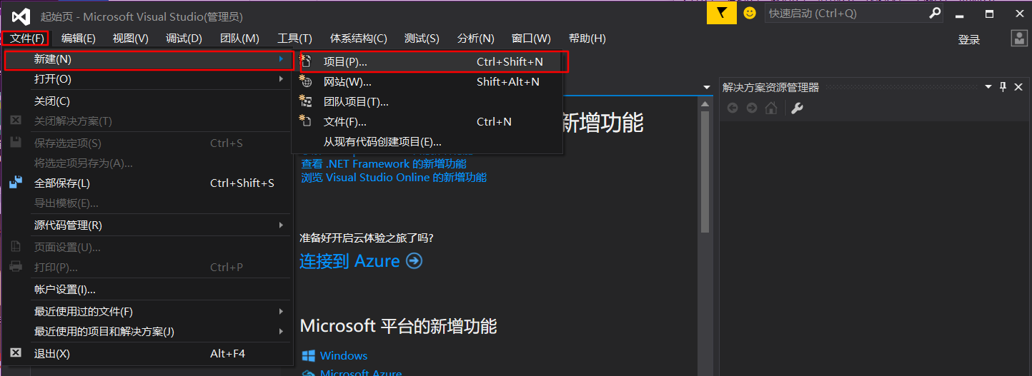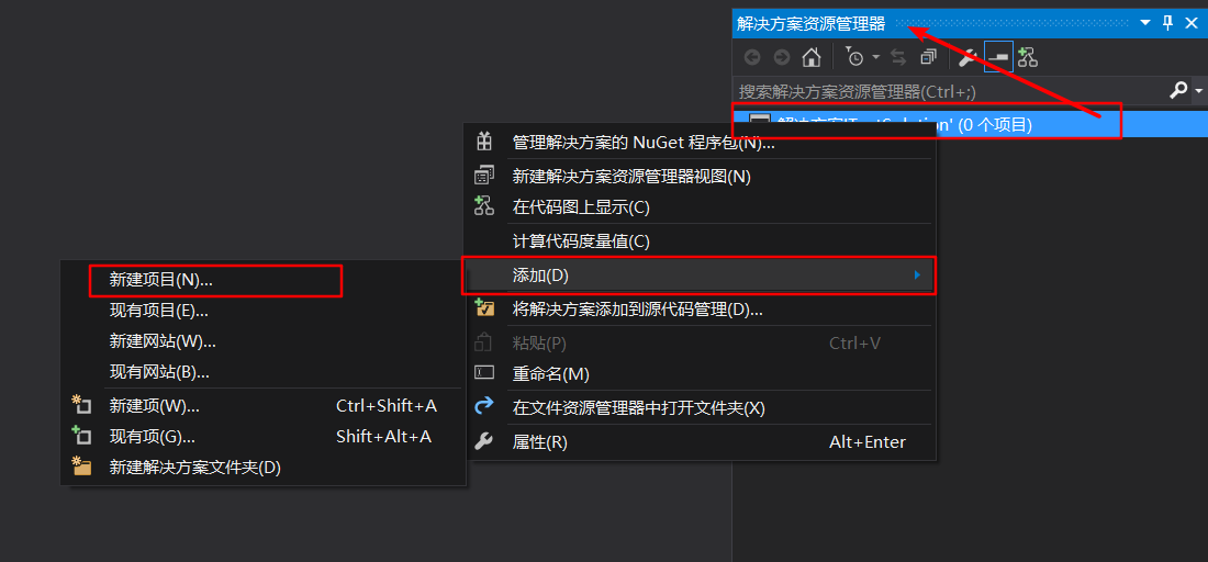 在解决方案管理器中,右键 解决方案,选择 新建—-新建项目