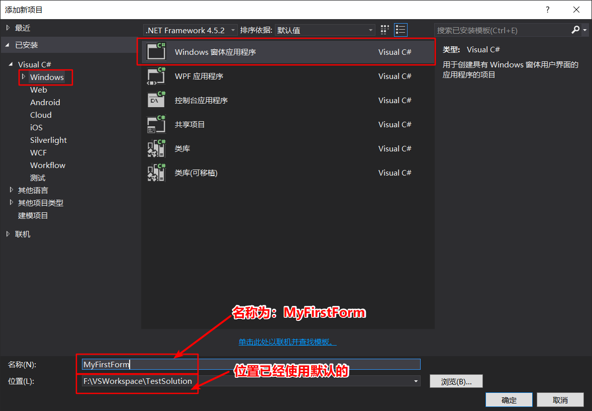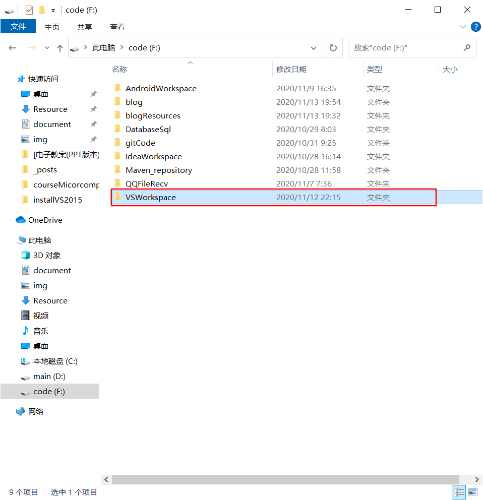在F盘新建一个文件夹,用来存放vs项目文件,并起名为 VSWorkspace